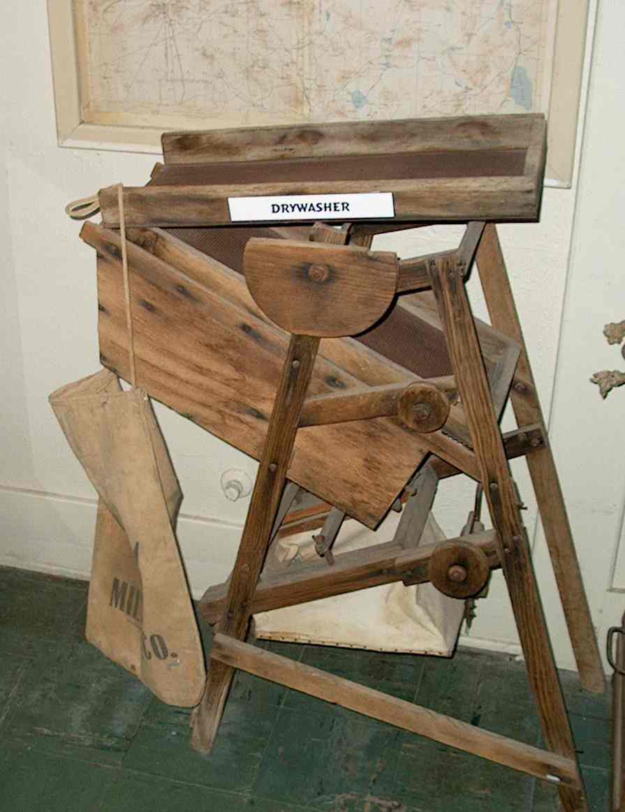 This is a dry washer used to separate heavy minerals, hopefully gold, from lighter sand and gravels. It was likely home made. It was hand operated and could be used just about anywhere. |
