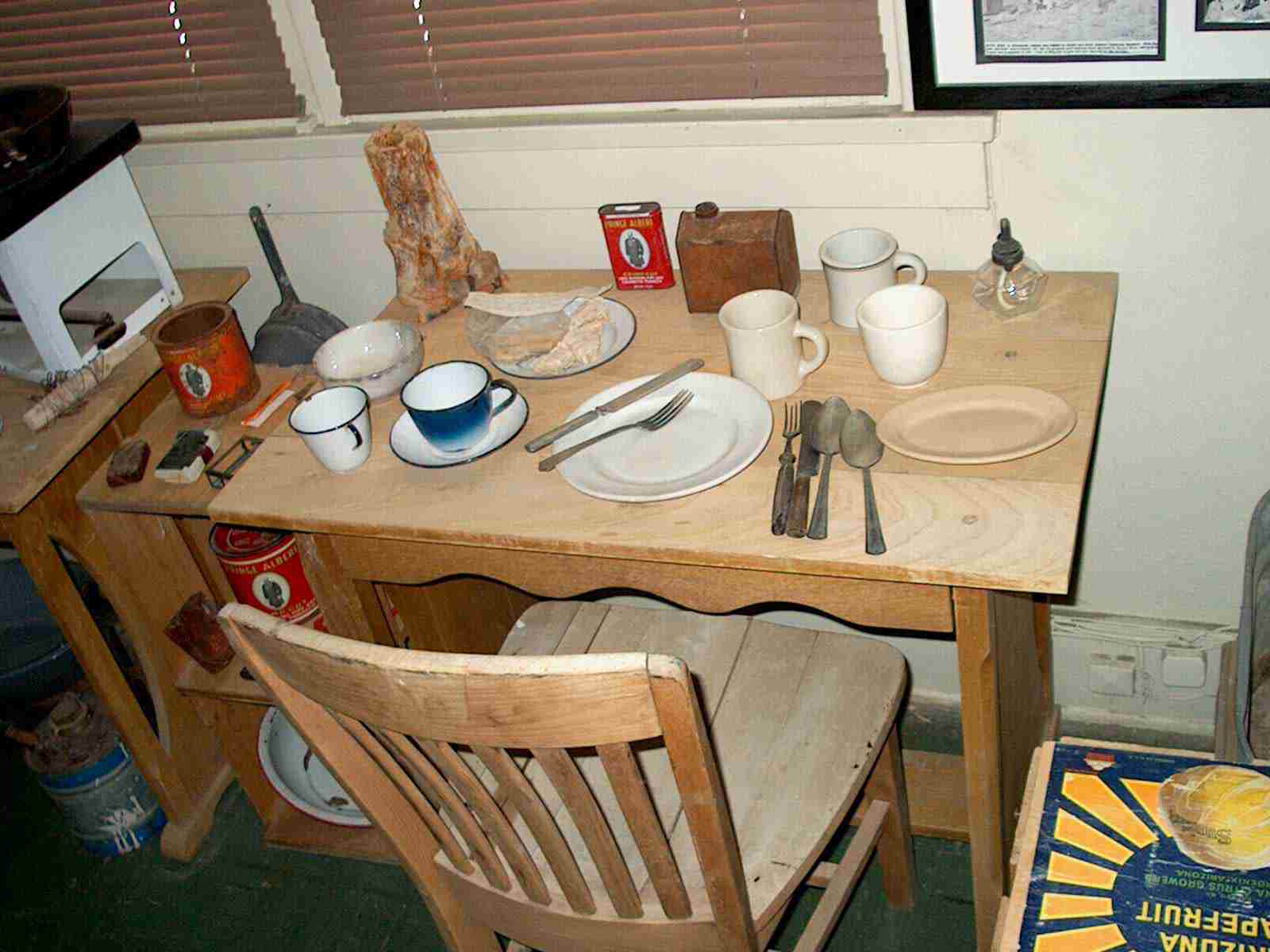A miners dinner table and eating utensils were simple, as was his food. This shows how they typically looked. |
